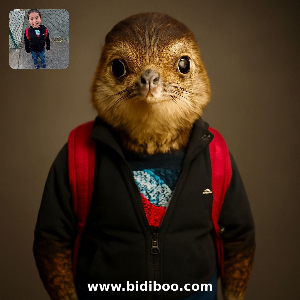 • A cute toddler bundled up in a colorful animal-patterned snowsuit sits curiously on fresh snow, with a playful beagle sniffing around near the garden bins in the background. The chilly scene is cozy and heartwarming, with the child's expressive face stealing the spotlight.